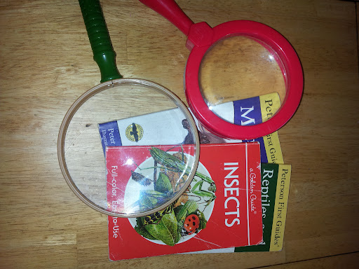 I’m so excited to start nature study! I got each of my little ones a magnifying glass, and put it in a bag with a couple simple field guides and a pair of oversize plastic tweezers. I left it in the basket by the door, so next time we go out to the park or even to take out the trash I can just pick it up and we are all ready to learn and enjoy. I can’t wait!