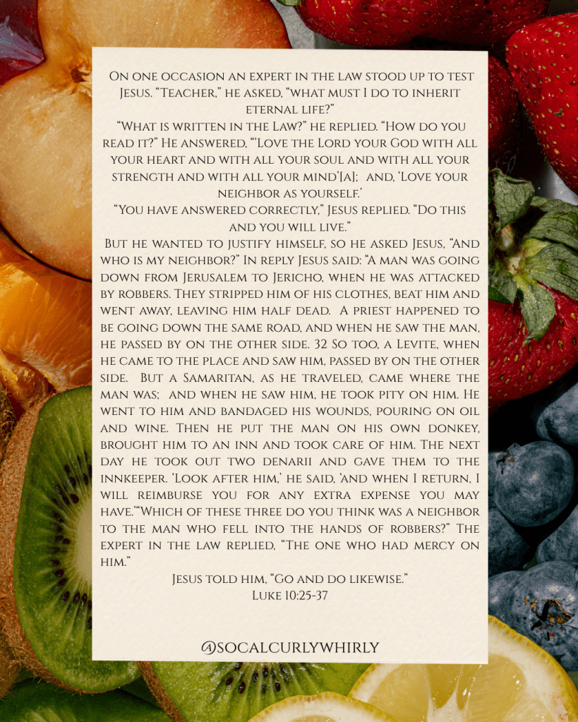 Topic: What does it look like to love your neighbor? The Good Samaritan
