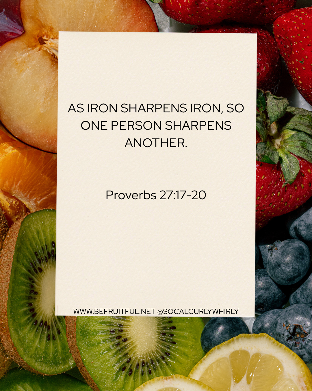 As iron sharpens iron, so one person sharpens another. Here are some examples of what this might look like: